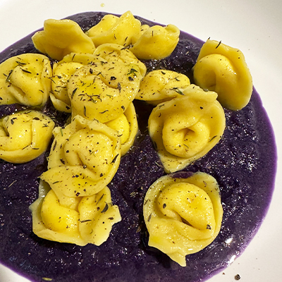Cappellaccio ripieno: Radicchio, Taleggio, Grana Padano e Chianti D.O.C