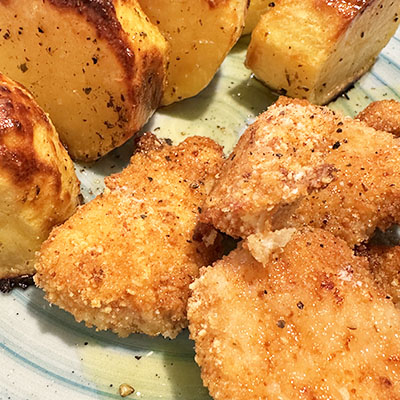Nuggets di Pollo Produzione Propria con Patate Rosse Arrostite al Forno